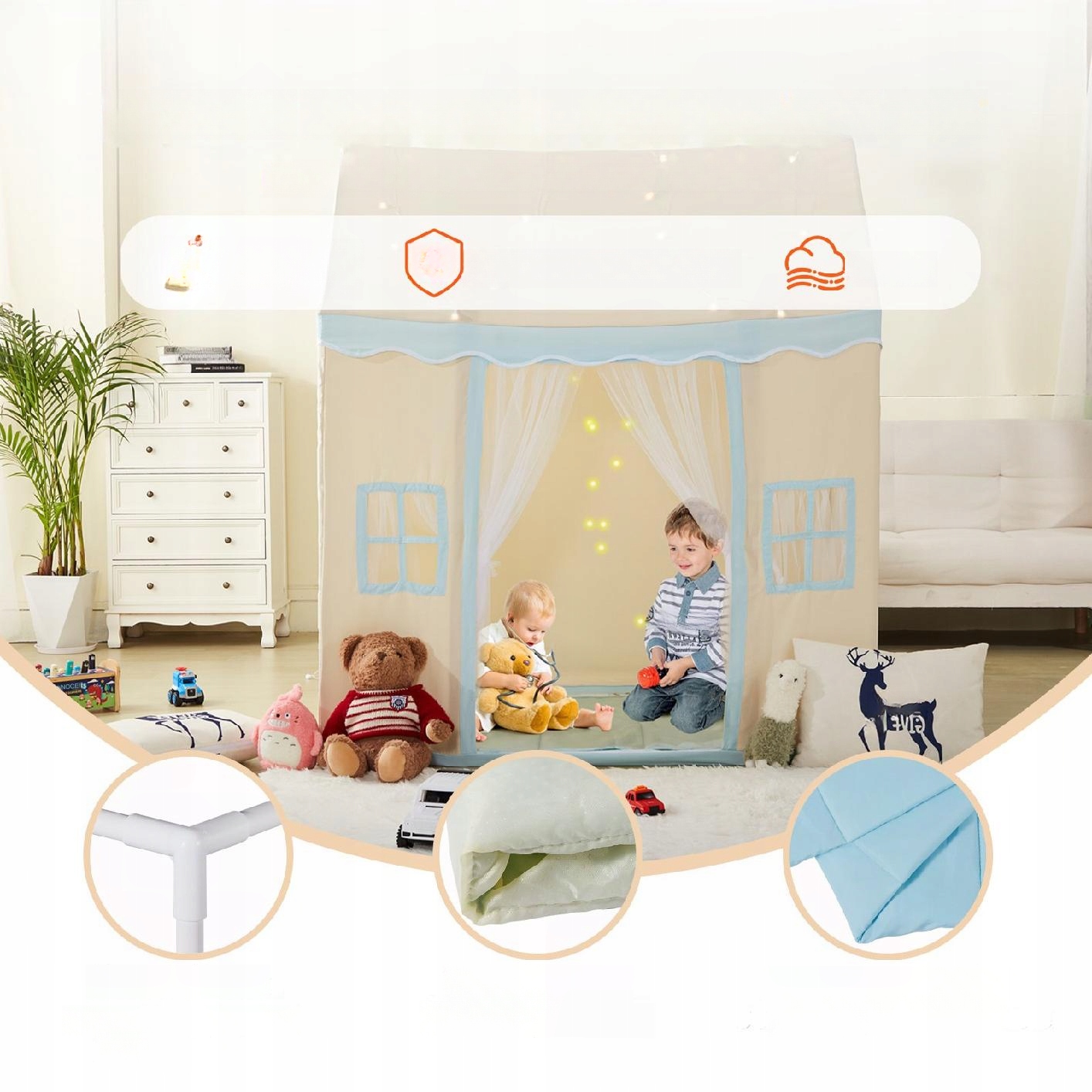 Namiot do zabawy dla dzieci nie wymaga montażu i jest gotowy do użycia zaraz po rozpakowaniu. Wykonany z przyjaznych dla skóry materiałów, dba o delikatną skórę dziecka. Oferuje bezpieczną i wygodną przestrzeń do zabawy, jednocześnie inspirując kreatywność i wyobraźnię, idealną zarówno do użytku wewnątrz, jak i na zewnątrz.