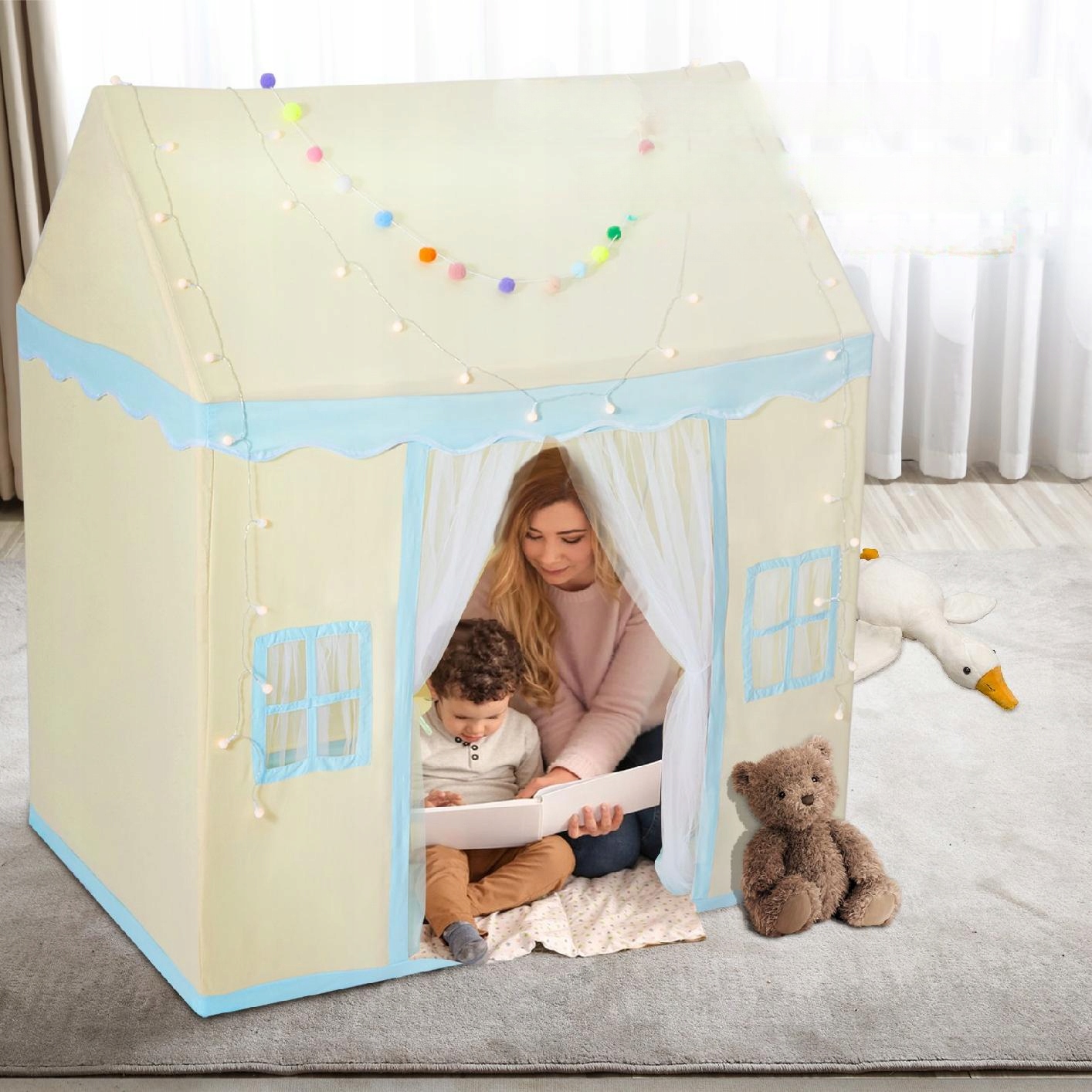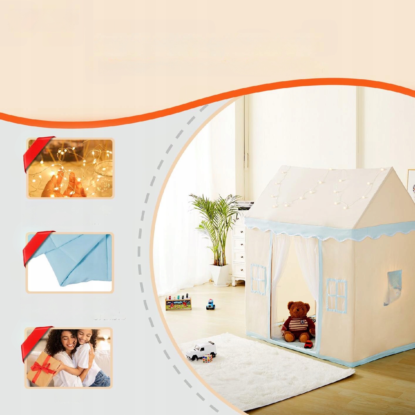 Nasz namiot dla dzieci zawiera dodatkową małą wiszącą lampkę i matę odporną na wilgoć. Wisząca lampka dodaje przytulnego blasku namiotowi, pozwalając dzieciom cieszyć się relaksującą zabawą i nauką nawet w nocy. Mata zapewnia dodatkowy komfort i ochronę namiotu.
