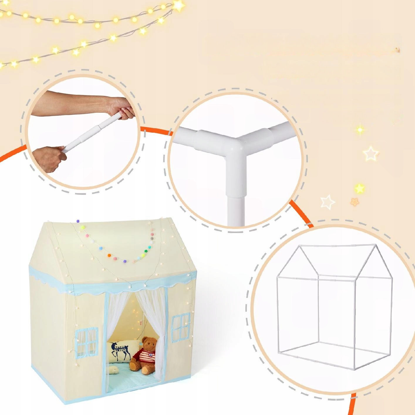 Namiot do zabawy dla dzieci nie wymaga montażu i jest gotowy do użycia zaraz po rozpakowaniu. Wykonany z przyjaznych dla skóry materiałów, dba o delikatną skórę dziecka. Oferuje bezpieczną i wygodną przestrzeń do zabawy, jednocześnie inspirując kreatywność i wyobraźnię, idealną zarówno do użytku wewnątrz, jak i na zewnątrz.
